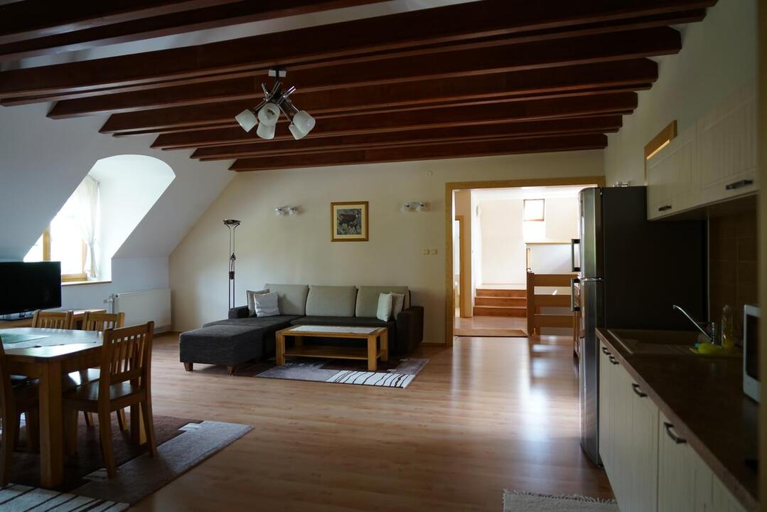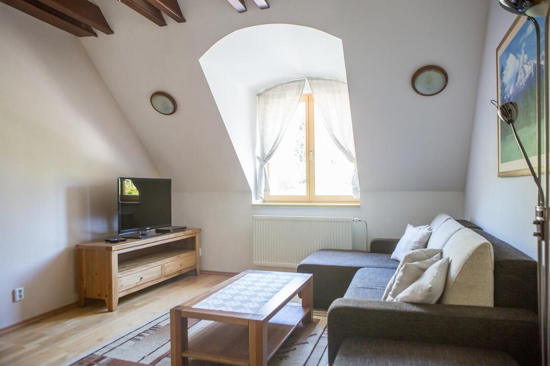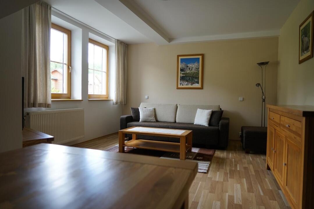 Z každého apartmánu sa naskytá výhľad na Vysoké Tatry alebo Popradskú dolinu. Všetky apartmány sú priestranné, majú drevené podlahy a sú zariadené dreveným nábytkom. Súčasťou apartmánov je obývacia izba a kompletne vybavená kuchyňa. K vybaveniu patrí LCD TV s DVD prehrávačom.