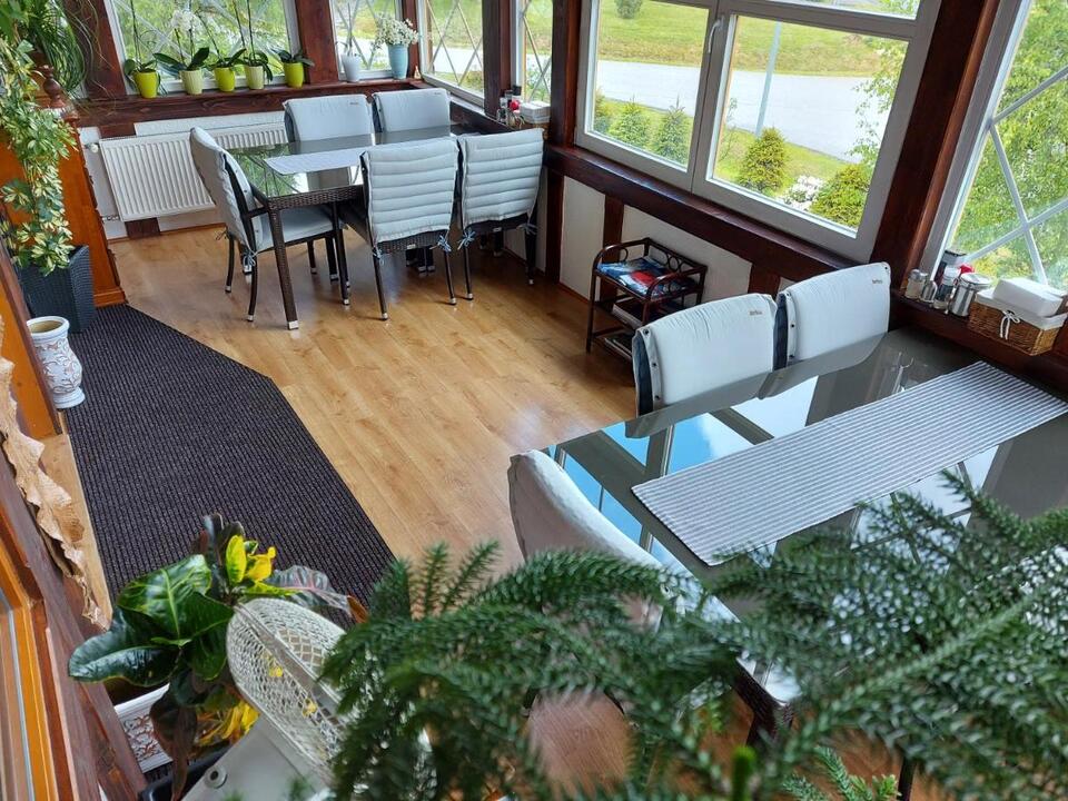 Jedlá sa podávajú v zimnej záhrade s panoramatickým výhľadom na hory a priestorom na posedenie s krbom. Najbližšia reštaurácia je vzdialená 900 metrov. Do obchodu s potravinami sa dostanete pešo za 10 minút.