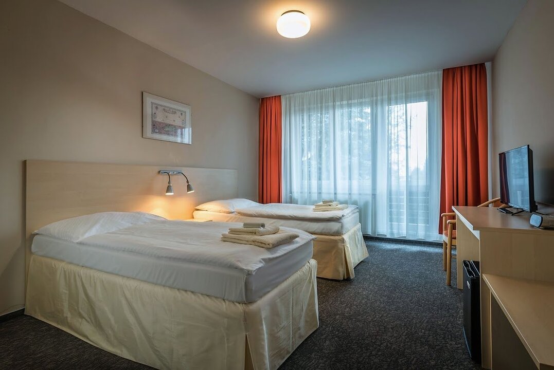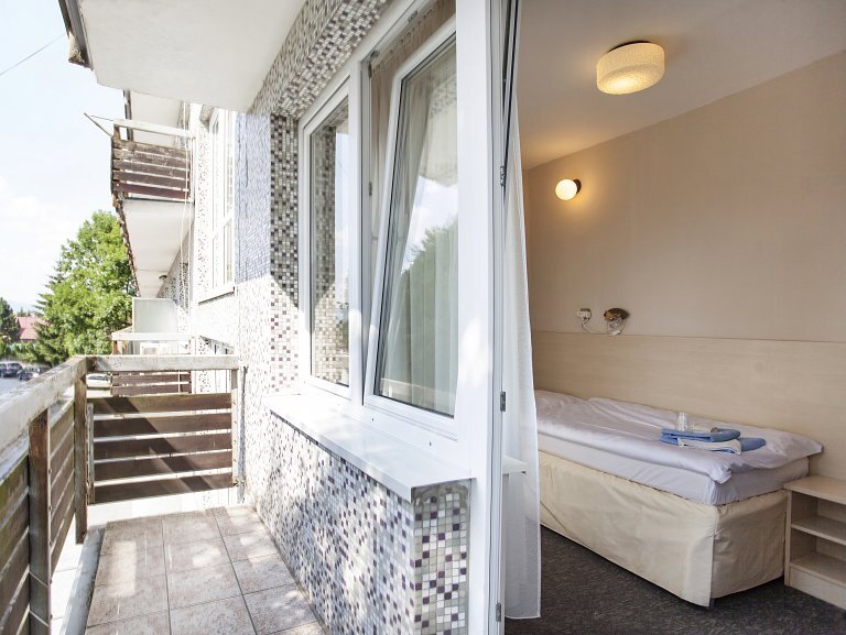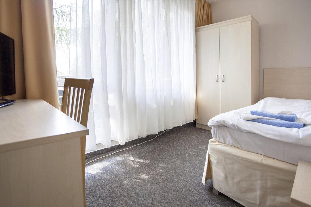Liečebný dom Aqua ponúka ubytovanie v jednolôžkových a dvojlôžkových izbách.