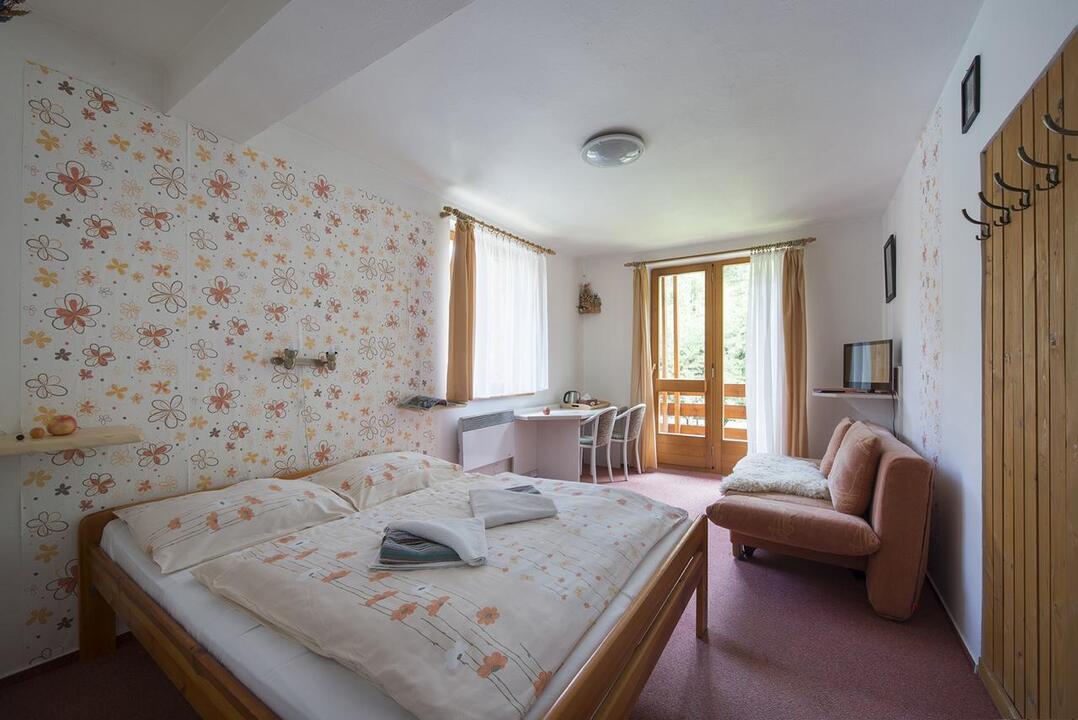 Môžete si vybrať z dvoj- a trojlôžkových izieb a štúdií s kuchyňou, ktoré sú situované v 3 nových budovách v alpskom štýle. Recepcia, raňajková miestnosť s krbom a bar s letnou terasou sa nachádzajú v hlavnej budove.