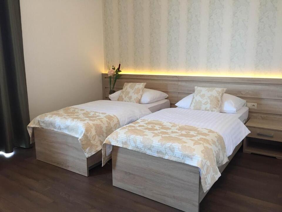 Príjemne a elegantne zariadené izby, vybavené telefonom, TV/SAT, rádio, sociálne zariadenie ( WC/sprcha, alebo WC/vaňa ), minibarom, trezorom a pripojením na internet. Súčasťou apartmánov je kompletne vybavený kuchynský kút ( chladnička, el. sporák,…). Kapacita ubytovania je 21 lôžok plus 6 prístelok. Zloženie :6 x 2 lôžkové izby 1 x apartmán – 2 lôžkový + 3x prístelka, 1 x apartmán – 4 lôžkový.