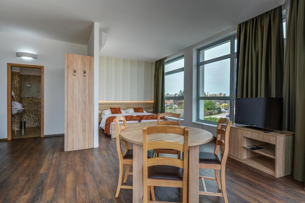 V hotelovej reštaurácii môžete ochutnať špeciality a pokrmy talianskej kuchyne. Raňajky sa podávajú na požiadanie vopred a za príplatok. Do centra Šamorína s ďalšími reštauráciami a obchodmi sa dostanete pešo za 5 minút.