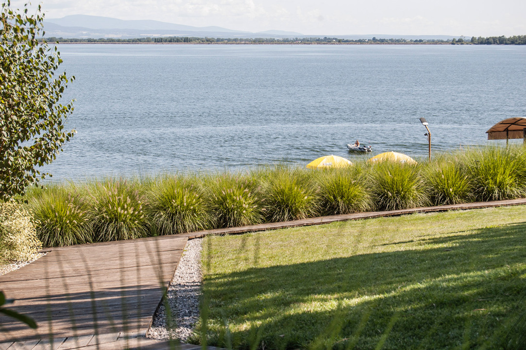 The location of the Medvedia hora resort is located in the most valuable landscape area, at the foot of an elevated promontory - a peninsula of volcanic origin. The picturesque view of the lake shore is connected with the view of the Bear Mountain. The resort is divided by a promontory into eastern and western parts. In the western part of Medvedej hora there is a recreational area with an area of 3 ha with a modified pebble beach, water bike rental, car camp ATC Anima and there is also a parking lot for about 250 cars and Pension Anima. Above the road is the Europenzión restaurant Salaš.