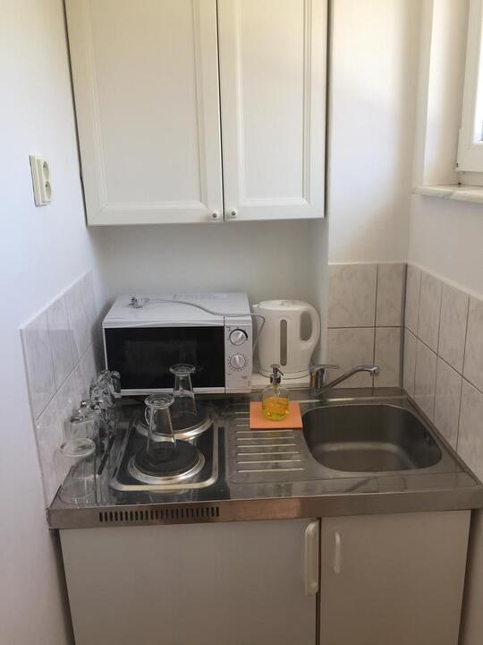 K vybaveniu patrí mikrovlnná rúra a rýchlovarná kanvica.