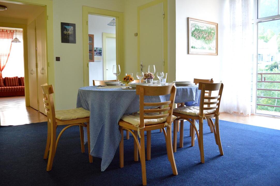 Apartmán má kompletne vybavenú kuchyňu s jedálenským kútom, vstavanú skriňu a obývací priestor s TV. Súčasťou je aj vlastná kúpeľňa s vaňou. K dispozícii máte pivnicu na ukladanie športového výstroja.