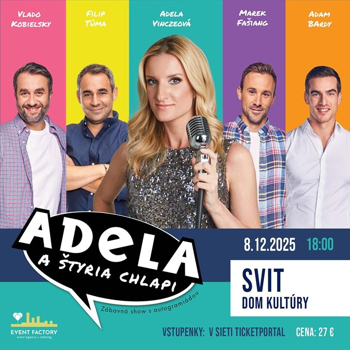 Výnimočná show, ktorá je zárukou skvelého humoru, sľubuje okrem iného inteligentné zamyslenia aj priame otázky až ku koreňu veci. Uvoľnené rozprávanie nie len o spoločnej práci, nie len o tom aké to je byť rodičom, ale aj o príjemných nezmysloch. Množstvo úsmevných situácií spred kamier, ale aj mimo nich v podaní Adely a štyroch chlapov je skutočne predzvesťou večera nabitého smiechom, uvoľnením sa a dobrou zábavou. Diváci, ktorí sú kľúčovou súčasťou celej zostavy majú možnosť svojimi otázkami priamo v priebehu show zistiť o účinkujúcich i niečo naviac.... čo v scenári nie je.