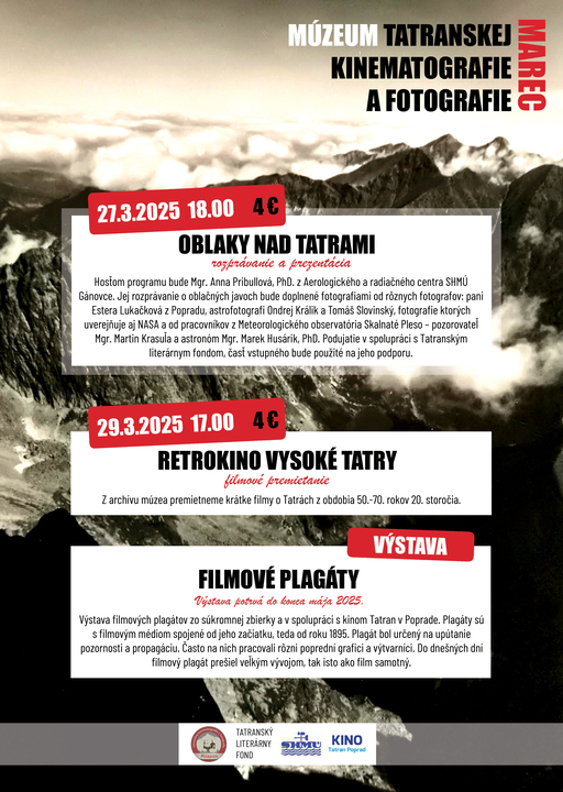 Srdečne vás všetkých pozývame do Múzea tatranskej kinematografie a fotografie na program Oblaky nad Tatrami a taktiež na retro premietanie o Vysokých Tatrách.