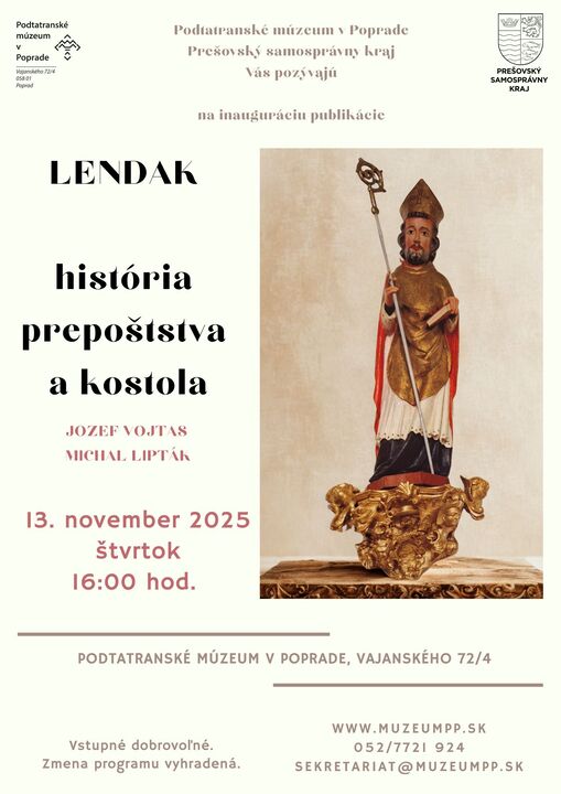 • LENDAK – DEJINY PREPOŠTSTVA A KOSTOLA / inaugurácia novej publikácie vdp. Mgr. Michala Liptáka 13. november 2025 / štvrtok/ 16:00 hod.
