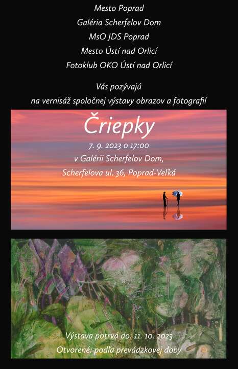 Mesto Poprad, Galéria Scherfelov dom, MsO JDS Poprad a Fotoklub OKO Ústí nad Orlicí vás pozývajú na vernisáž spoločnej výstavy obrazov a fotografií Čriepky.