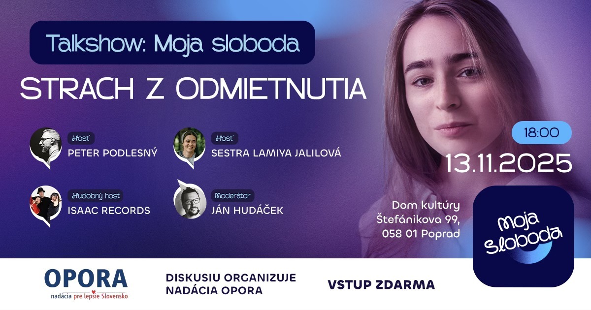 Každý z nás sa už stretol so strachom z odmietnutia. Brzdí nás v rozhodnutiach, vzťahoch aj v tom, aby sme žili naplno. Ale čo ak práve odmietnutie môže byť cestou k slobode a sile? Na ďalšej talkshow Moja sloboda ťa čaká večer plný inšpirácie, autentických príbehov, kde sa spoločne pozrieme strachu do očí.