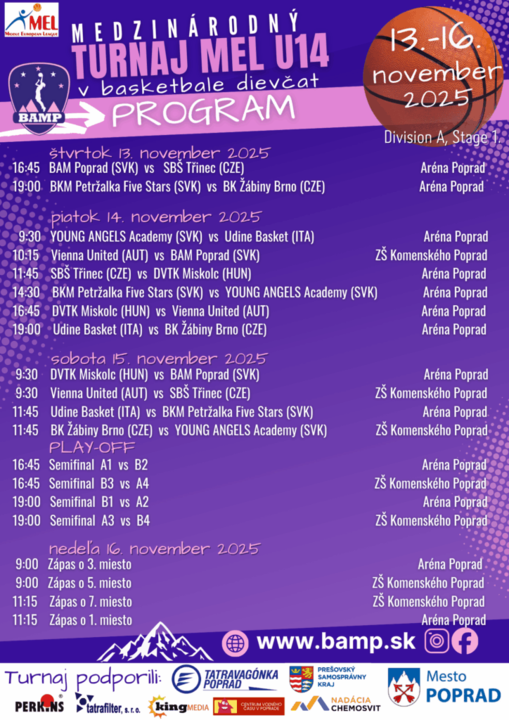 V dňoch 13.-16.novembra 2025 v rámci turnaja MEL náš klub privíta účastníkov z piatich európskych krajín – Slovenska, Čiech, Maďarska, Rakúska a Talianska, tentokrát v kategórii U14.