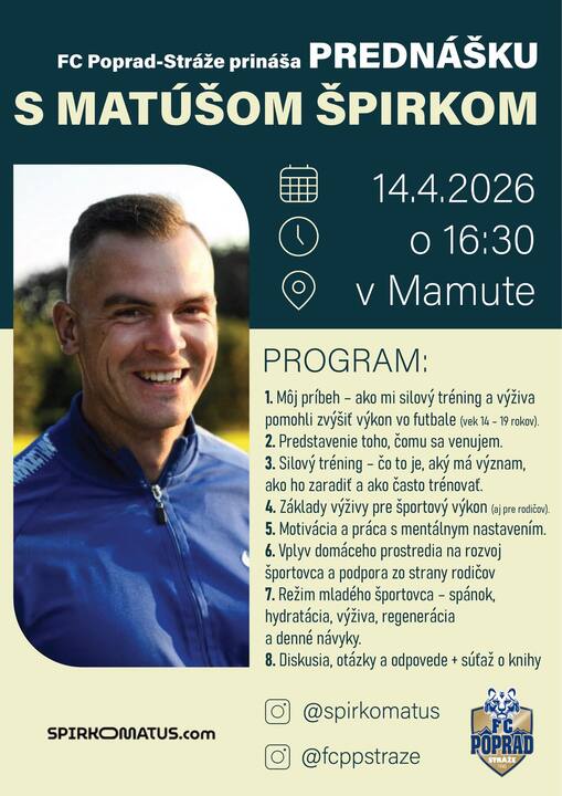 FC Poprad-Stráže vás pozýva na prednášku s Matúšom Špirkom