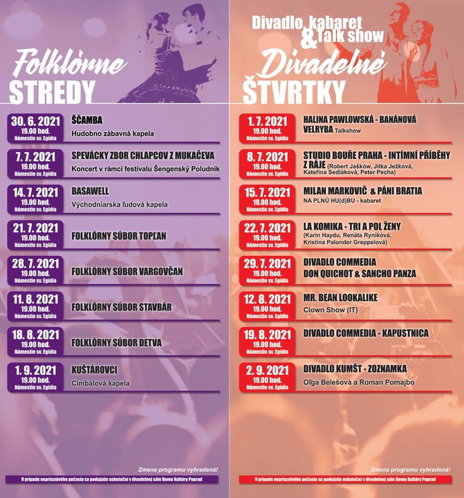 Hoki Poki – dvaja známi, prevedú Vás rozprávkovým predstavením s tancom a pesničkami. Príbeh, ktorý cez vtip a zábavu upozorní, že nič nie je dobré zatajovať a každé veľké tajomstvo bude odhalené.