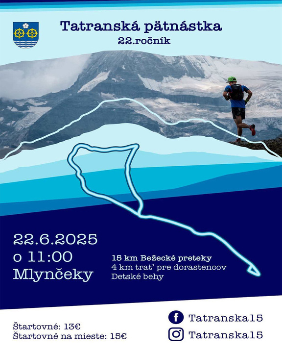 🏔️👟 Tatranská pätnástka: Výhovorky nechaj doma, tenisky zober so sebou! 👟🏔️ Milí bežci,je čas oprášiť bežecké topánky, natiahnuť legíny a vyraziť do malebných hôr – Tatranská pätnástka je späť! ✨ 🗓️ Nedeľa, 22. jún 2025 o 11:00 hod. Mlynčeky – štartujeme priamo pod majestátnymi štítmi Vysokých Tatier 🌲🏞️