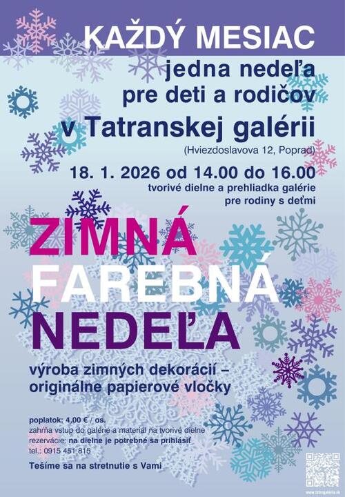 Strávte jarné prázdniny kreatívne v Tatranskej galérii. Pripravili sme pre Vás týždeň plný farieb, fantázie a tvorivosti. Každý deň objavíme novú techniku a vytvoríme si vlastné umelecké výtvory.