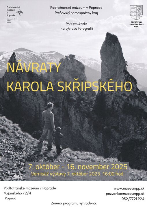 • NÁVRATY KAROLA SKŘIPSKÉHO / výstava fotografií 7. október 2025 – 16. november 2025 utorok – sobota 9:00 – 17:00, nedeľa 13:00 – 17:00