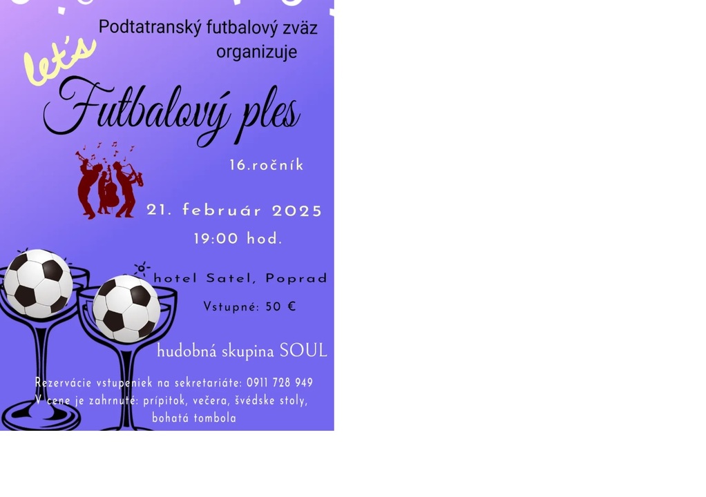 Podtatranský futbalový zväz pozýva priaznivcov nielen futbalu a dobrej zábavy na 16.ročník futbalového plesu, ktorý organizuje Podtatranský futbalový ples.
