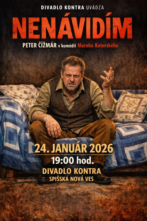 Už túto sobotu 24. januára hráme v Kontre kultovú komédiu z pera majstra kina a filmu Mareka Koterského "NENÁVIDÍM", predstavenie, ktoré sa drží v repertoári Kontry neuveriteľných 14 rokov a je stále aktuálne!