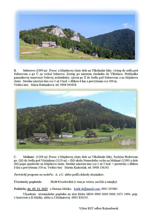 Vedúca túry: Mária Hatňanková, tel. 0908 943 658