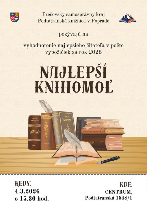 Ocenenie najlepších čitateľov v Podtatranskej knižnici za rok 2025 v troch kategóriách so sprievodným programom.