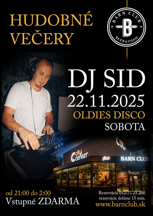 ❗️❗️❗️ HUDOBNÉ VEČERY V BARN CLUBE❗️❗️❗️ 🎧Zahrať a roztancovať Vás príde DJ SID🎧