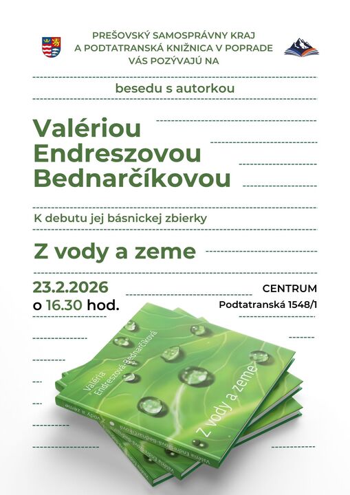 Pozývame Vás na autorskú besedu a čítačku Valérie Endreszovej-Bednarčíkovej, ktorá predstaví svoju debutovú zbierku Z vody a zeme.
