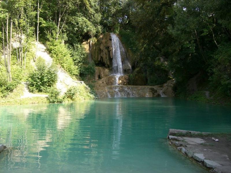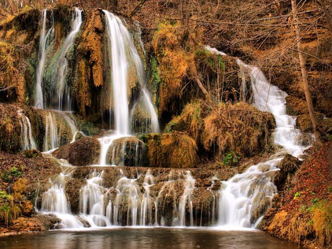 The waterfall is a great rarity also because it lies in the middle of the village. It is 12 meters high, cascading and falls from the edge of the travertine terrace into a small lake. The Lúčanka or Teplianka stream itself is not interesting at all, but its tributaries are gypsum-earthy Teplice, which enriched the decoration of the waterfall by flowing over the mentioned travertine terraces, from which the waterfall falls down.