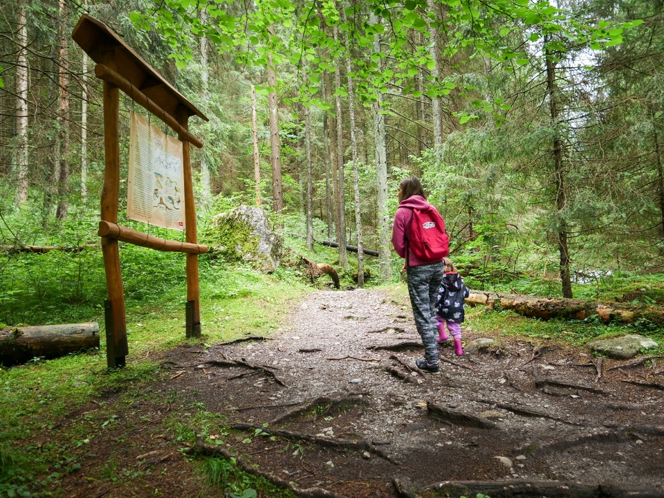 Prvá časť chodníka začína pri hoteli Bystrina a približne kilometer od Bystriny vás peší chodník dovedie ku Starej horárni. Od Starej horárne môžete pokračovať k Hotelu Chopok alebo až k parkovisku Ľadovej jaskyne. Pri Hoteli Chopok je možné prejsť na druhú stranu dreveným mostíkom, kde je na zábradlí osadená tabuľa s úvodom do témy vody a vysvetlením hravých úloh/ príbehu. Na druhej strane potoka chodník pokračuje okolo ohybu potoka ďalej na juh, kde sa na druhom brehu nachádza niekoľko výrazných pňov s koreňmi vo vode. O kúsok ďalej pred stúpaním chodníka je umiestnená ďalšia zastávka s názvom ,,brod“, kde majú malí aj veľkí možnosť priameho kontaktu s vodou. V letných mesiacoch môžete vyskúšať studenú vodu a prebrodiť sa na druhú stranu. Tu sa nachádza lavička s nápisom na operadle vyzývajúcim k jej návšteve. Je tu tiež možnosť preskákať suchou nohou na druhú stranu po rozmiestnených kamenných šľapákoch, či brvnách.