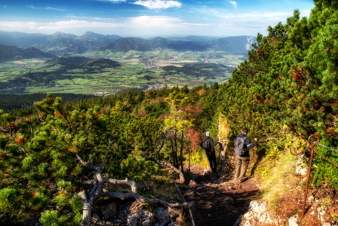 Trasa začína vo Valaskej Dubovej pri turistickom smerovníku vedľa zastávky autobusu „Valaská Dubová,,OcÚ“. Po modrej značke vedúcej popri drevorezbe zbojníka do kopca pomedzi domy sa cesta rozdvojuje a odbočíme k skalnému bralu za obcou. Spevnená cesta pokračujeme pomedzi stromy a kríky na lúku. Pod lesom sa nachádza náučný panel o „Lese“ a vpravo od neho prístrešok so sedením. Po vojdení do lesa sa trasa stáva strmšou. Po krátkom stúpaní sa dostaneme k prístrešku so sedením a studničkou s vodou. Tu sa povrch mení na štrkový až skalnatý a dostaneme sa ním až k pomyselnej skalnej bráne, ktorú tvoria skaly po obidvoch stranách chodníka, odkiaľ začne byť stúpanie ešte väčšie. Cesta pokračuje stále priamo strmo hore k náučnému panelu o „Faune“. Trasa sa tu zvoľní, potom zas prudšie stúpa až nás dovedie na lúky, na ktorých nájdete náučný panel o „Flóre“. Ďalším dôležitým miestom na trase je smerovník – Stredná Poľana, kde sa môžete pokochať výhľadmi. Odbočíme na zelenú značku po okraji horskej lúky, odbočíme doprava na letnú trasu. Lesným chodníkom naberáme výšku potrebnú na zdolanie vrcholu. Keď vyjdeme z lesa na svahovité lúky, ktoré nás dostanú do kosodreviny. Zdolanie kosodreviny je krátke, ale skalnaté a štrkové. Kúsok od vrcholu sa naša trasa spája s červeným turistickým chodníkom, s ktorým pokračujeme na vrchol a neskôr aj ďalej. Pod skalou trčiaci turistický smerovník nás víta na vrchole Veľkého Choča. My však pokračujeme ešte pár metrov doprava na samotný vrchol, na ktorom sa nachádza výhľadová ružica, ktorá nám pomôže identifikovať okolité kopce a výstupová kniha, do ktorej sa môžeme zapísať. Odmenou za absolvovanie výstupu je nádherný panoramatický výhľad na všetky svetové strany. Veľká Fatra, Malá Fatra, Chočské vrchy, Nízke Tatry, Západné Tatry, Vysoké Tatry, Oravská Magura, Orava, Liptov a mnoho iného je možné za dobrého počasia vidieť z vrcholu.