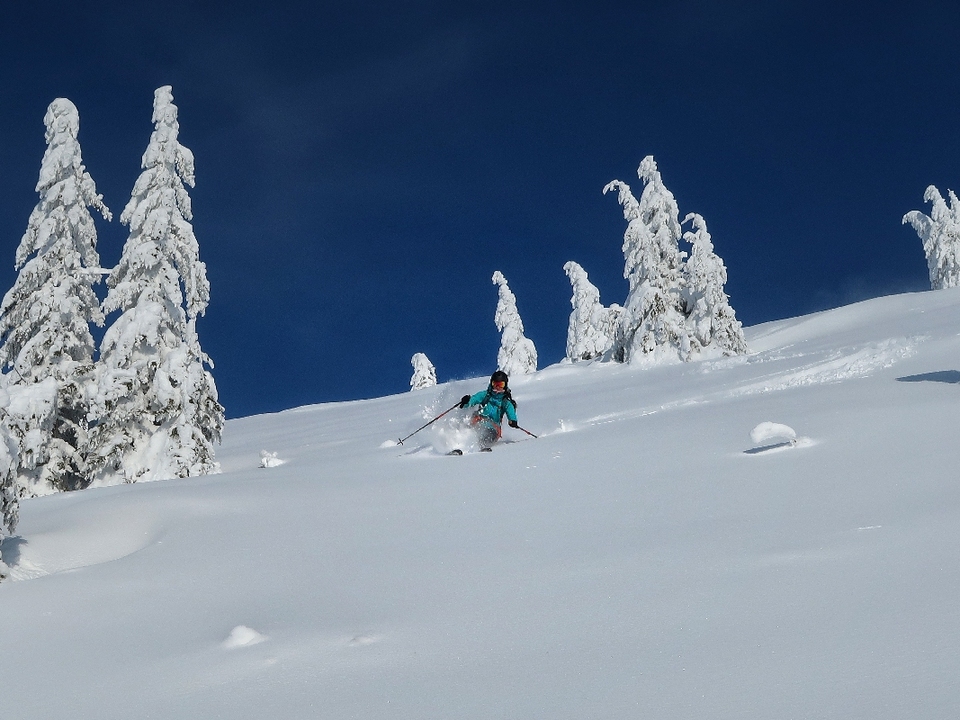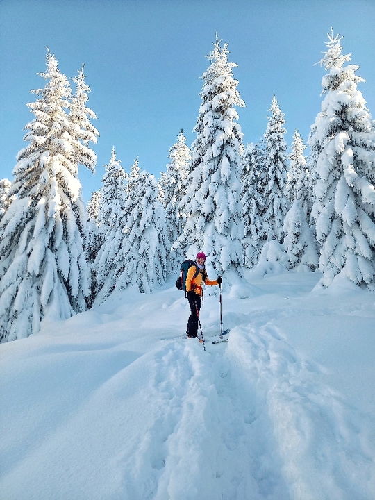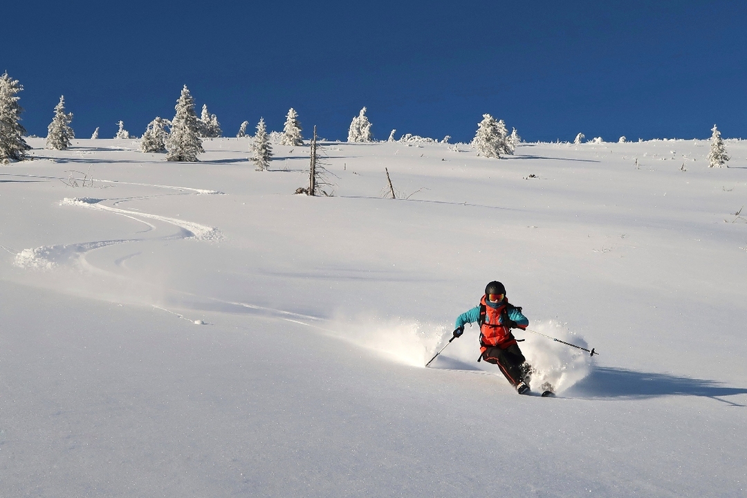 In the case of powder conditions, skiing among the trees is great. The same applies to the ascent, the more snow, the easier the descent. The end is just a descent along a forest road.